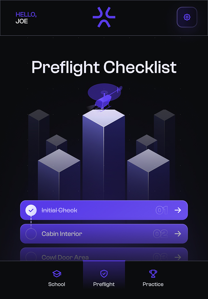 Before every flight, a thorough preflight inspection is critical to safety and performance. This module provides an interactive simulation of the preflight process, allowing students to walk around a virtual helicopter, identify components, and learn inspection procedures step by step. From checking fluid levels to understanding control linkages, users gain a hands-on feel for preflight without needing access to a real aircraft. It’s a safe, repeatable way to build confidence and reinforce best practices.